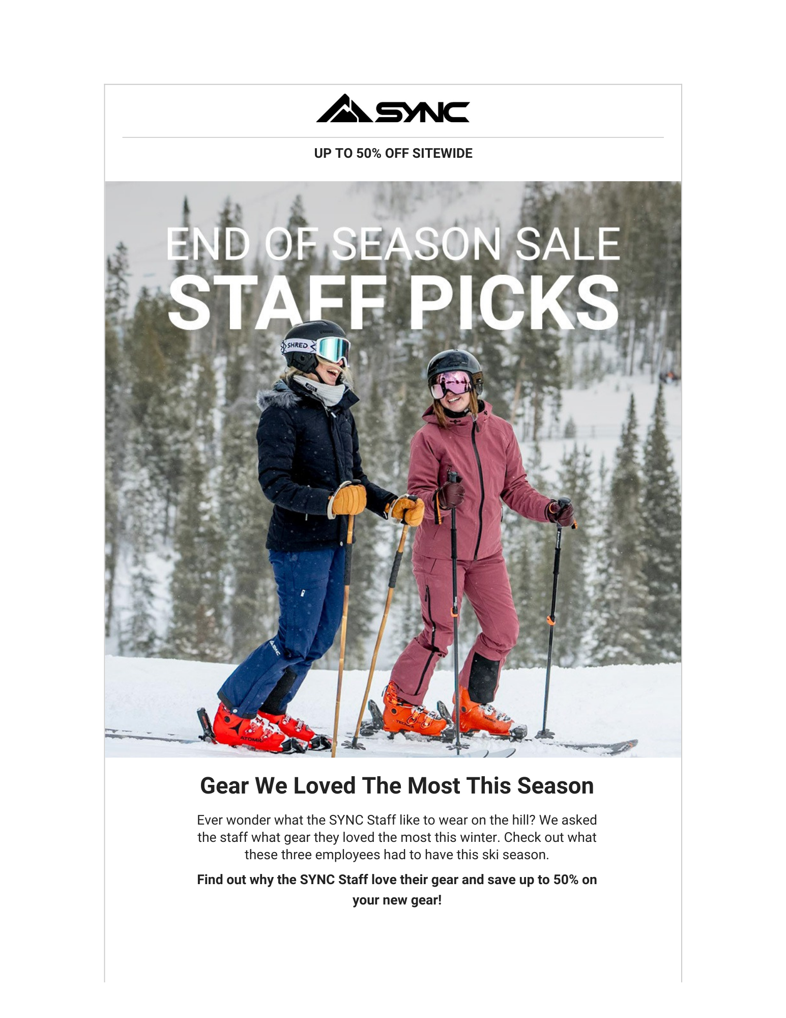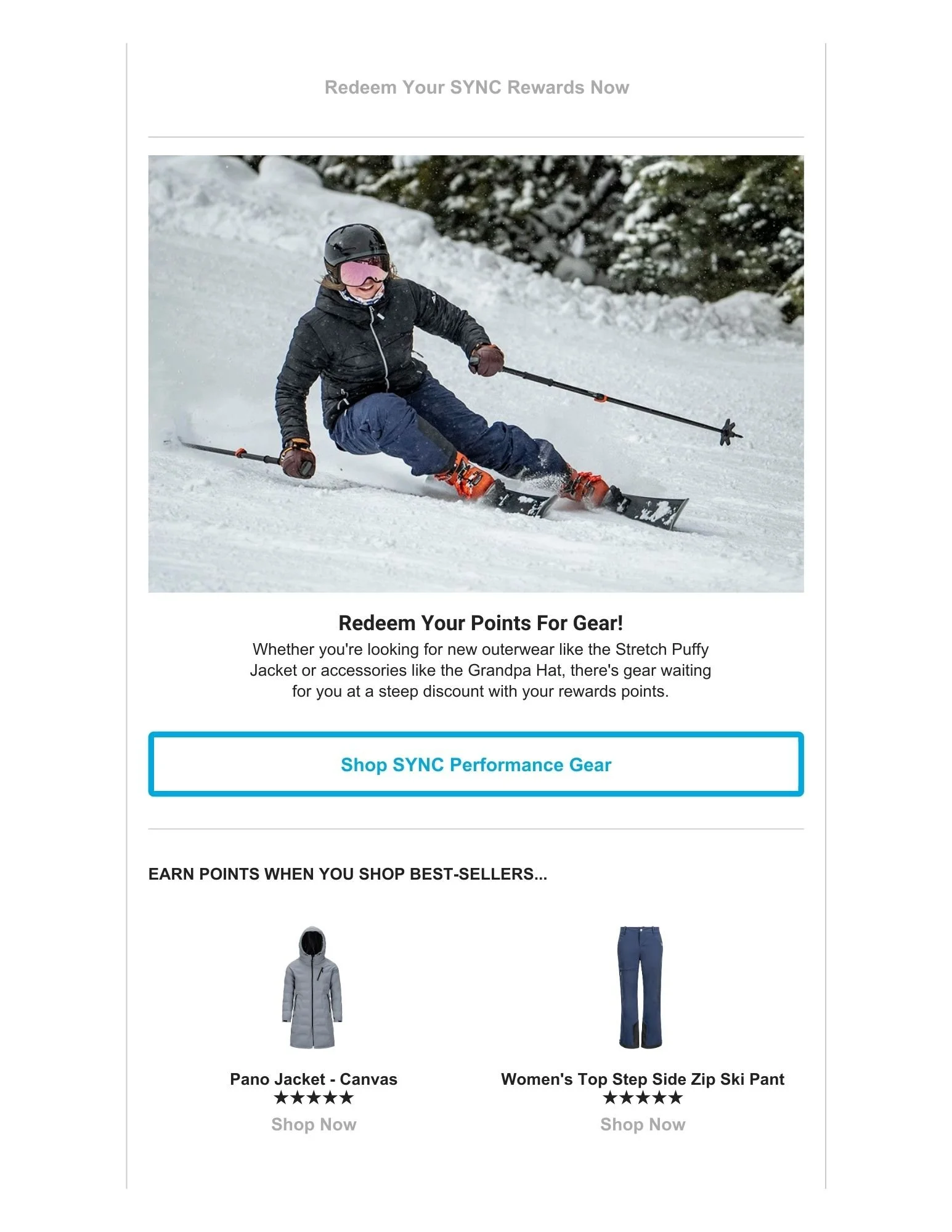 SYNC Performance is a direct-to-consumer ski apparel brand serving ski racers and mountain athletes. As the company expanded, I took ownership of the email channel end-to-end — building out the campaign calendar, optimizing existing lifecycle flows, and leading all Black Friday / Cyber Monday email initiatives.
